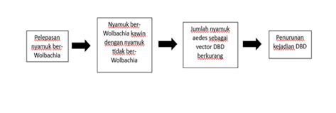 Berbagai metode pencegahan kasus demam berdarah telah dilaksanakan untuk membantu mengurangi angka kejadian demam dengue di Indonesia. Salah satunya adalah Upaya pengendalian vektor dengan pengabutan (thermal fogging) dan Ultra Low Volume (Cold fogging) menggunakan insektisida malathion (Hidana, 2017). Penggunakan insektisida tersebut justru dapat menyebabkan resistensi (Nurmaulina, 2016). Selain fogging, beberapa metode lain seperti pemberantasan sarang nyamuk (PSN) (Bestari, 2018), metode Teknik serangga mandul (TSM) (Suwandi, 2017), dan penggunaan ikan cupang telah dilaksanakan, namun metode tersebut dirasa kurang efektif. Metode baru yang dikembangkan untuk mengendalikan vektor demam dengue adalah penggunaan Wolbachia (Buchori, 2017).