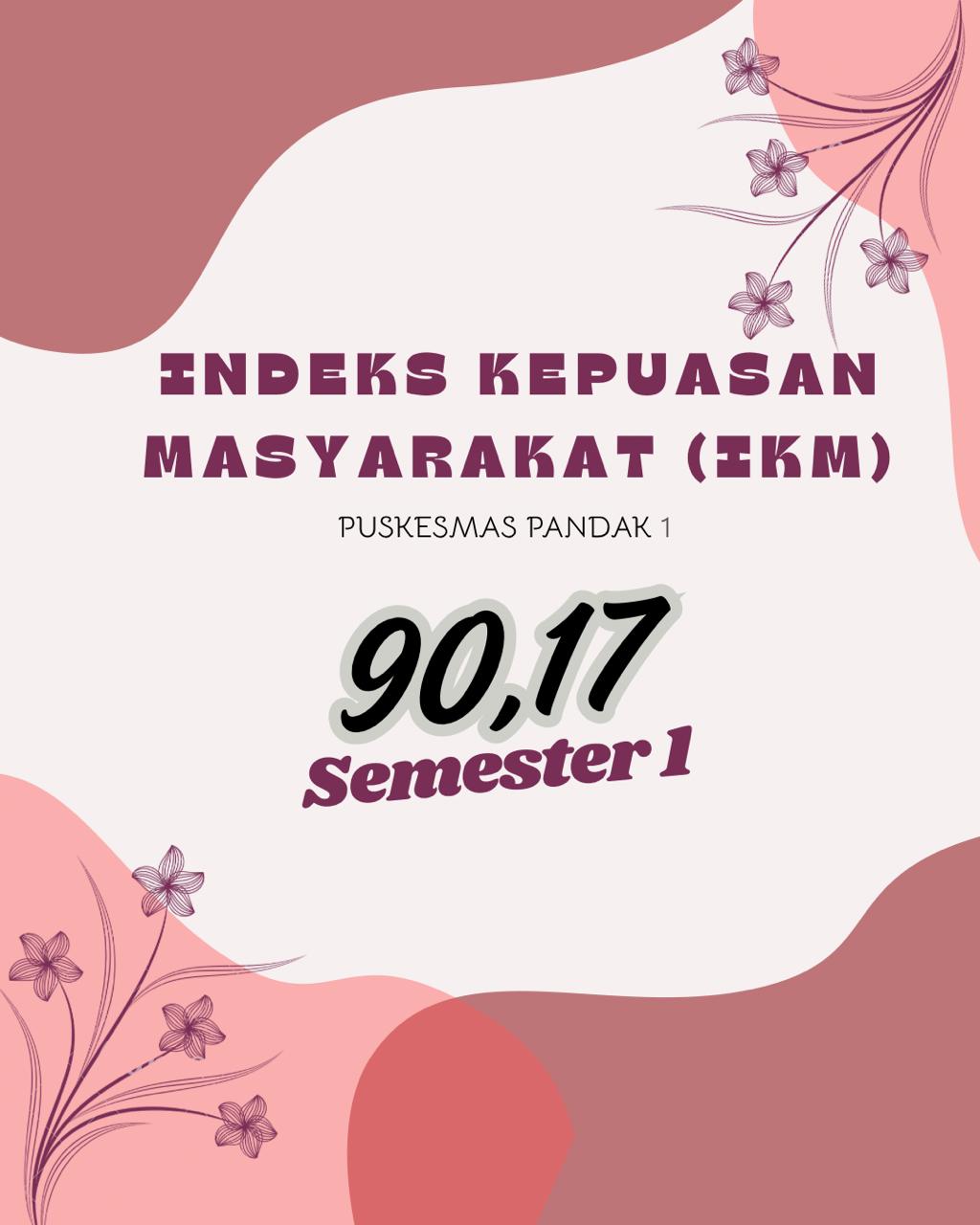 Indeks kepuasan masyarakat adalah alat yang digunakan untuk menilai sejauh mana masyarakat puas dengan berbagai aspek pelayanan publik. Pada tahun 2025 semester 1, Puskesmas Pandak 1 mendapatkan nilai baik yakni 90,17. Terimakasih kami ucapkan kepada seluruh warga masyarakat yang masih mempercayakan pelayanan dibidang kesehatan terutama kepada Puskesmas Pandak 1. salam sehat